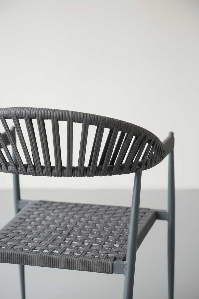 Dayanıklı metal iskelet üzerine estetik ip örgü detayları ile tasarlanan bu sandalye, hem iç hem de dış mekanlarda uzun ömürlü kullanım sunar. Ergonomik kavisli sırt yapısı, konforlu bir oturma deneyimi sağlarken modern tasarımıyla dekorasyonunuza şıklık katar.
