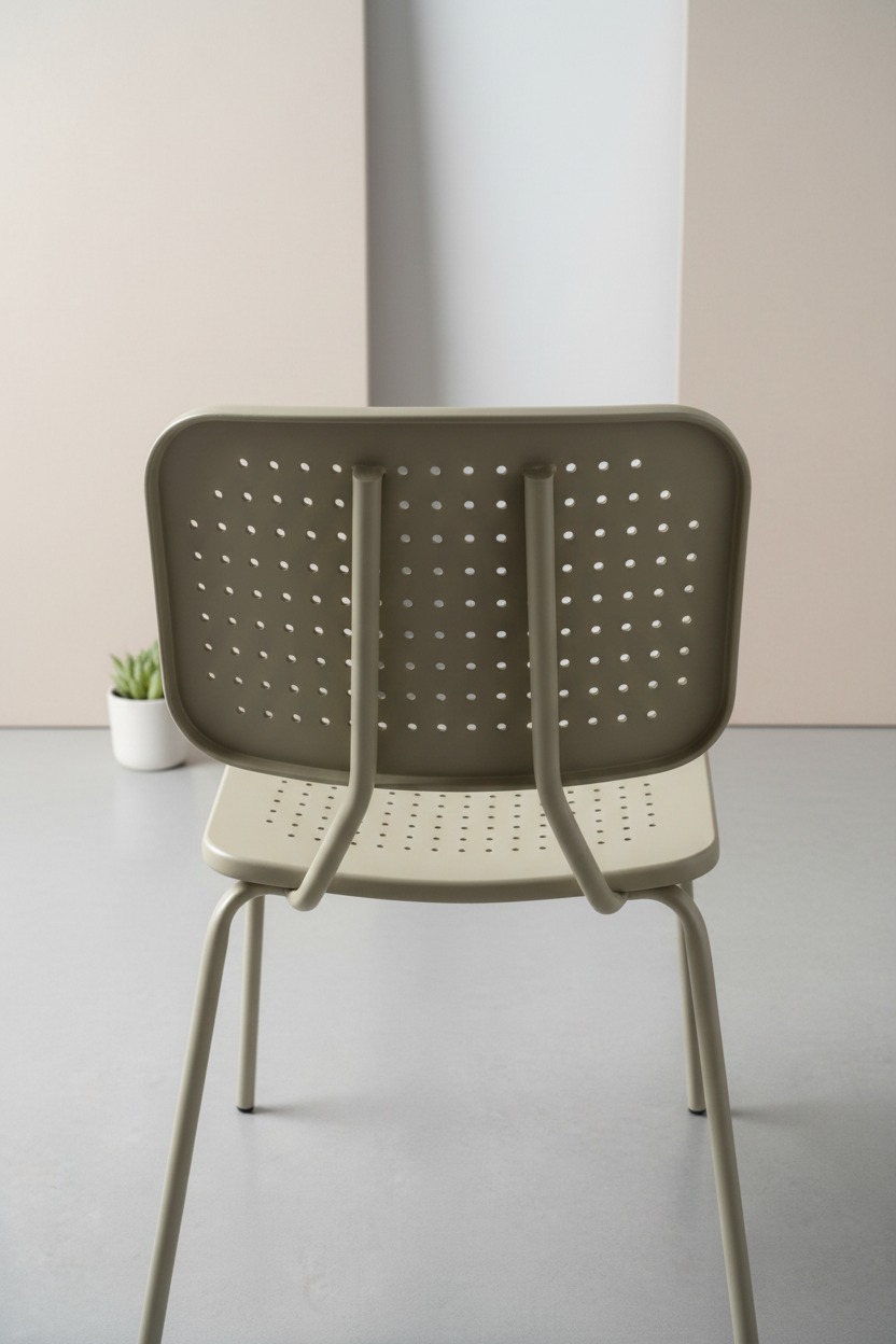 Dayanıklı metal gövdesi ve ikonik delikli tasarımıyla öne çıkan bu endüstriyel sandalye, minimalist ve retro bir estetik sunar. Hem iç mekanlarda hem de kapalı balkonlarda kullanım için ideal olan sağlam yapısı, uzun ömürlü kullanım vaat eder. Hava alan delikli yüzeyi konfor sağlarken, vintage görünümüyle mekanınıza karakter katar.