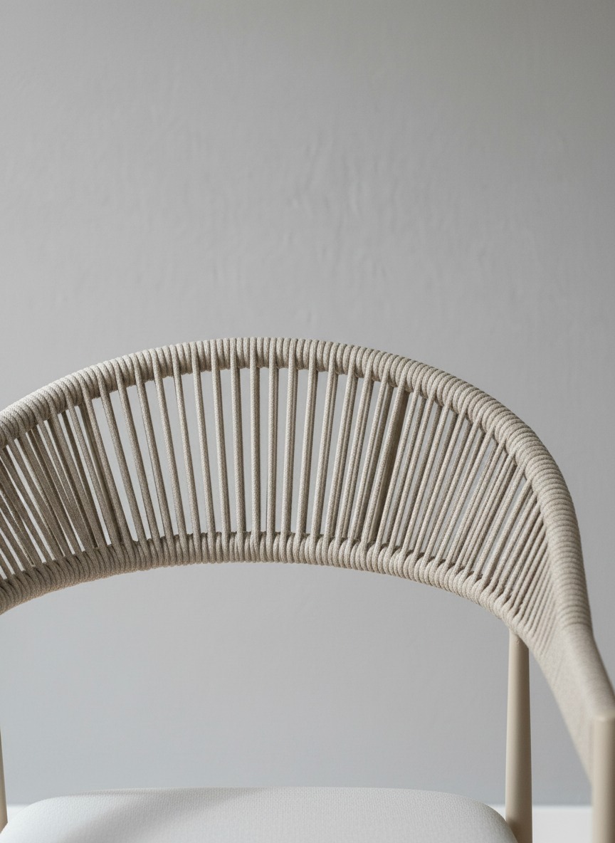 Minimalist tasarımıyla estetiği ve konforu bir arada sunan bu sandalye, dayanıklı metal gövdesi ve el işçiliği halat örgü sırt detayıyla öne çıkıyor. Hem iç mekan hem de dış mekan kullanımına uygun yapısı, ergonomik oturma alanı ile uzun süreli kullanımlarda rahatlık sağlar. Modern balkon, bahçe ve yemek odası dekorasyonları için mükemmel bir tamamlayıcıdır.