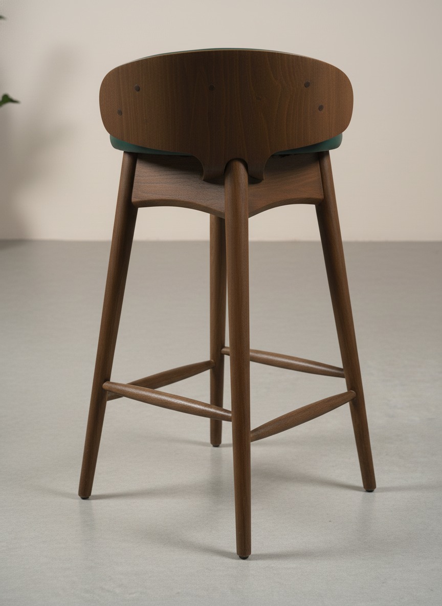 Yüksek kaliteli ahşap iskeleti ve ergonomik yuvarlak oturma alanı ile hem estetik hem de konforu bir arada sunan bu bar taburesi, mutfak adaları, ev barları ve ticari mekanlar için idealdir. Dayanıklı ayak yapısı ve şık tasarımıyla mekanınıza sofistike bir hava katar.